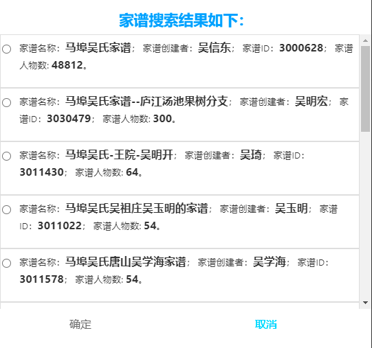 .所示,系统将展示所有公开的家谱相关信息。公开家谱搜索