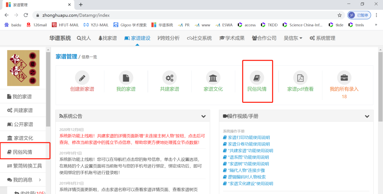 查看已公开民俗风情文章有两种方式,由华谱主系统进入如图