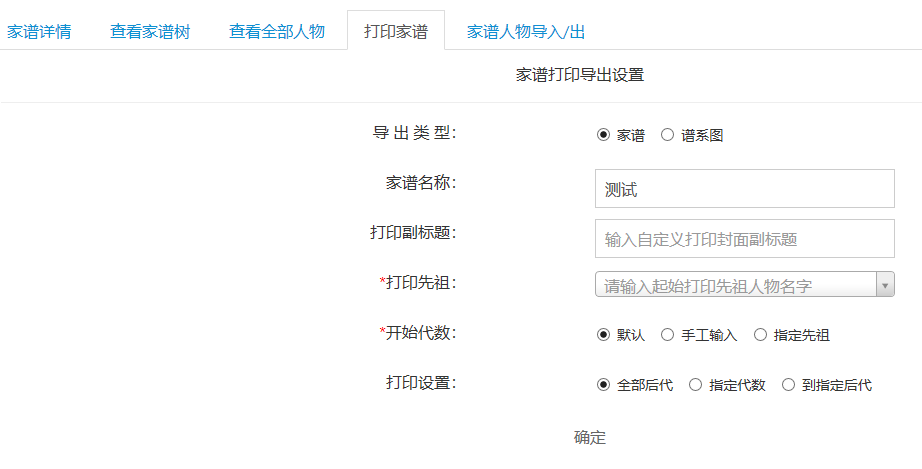 用户点击“家谱打印”即可进入公开家谱打印页面,如图