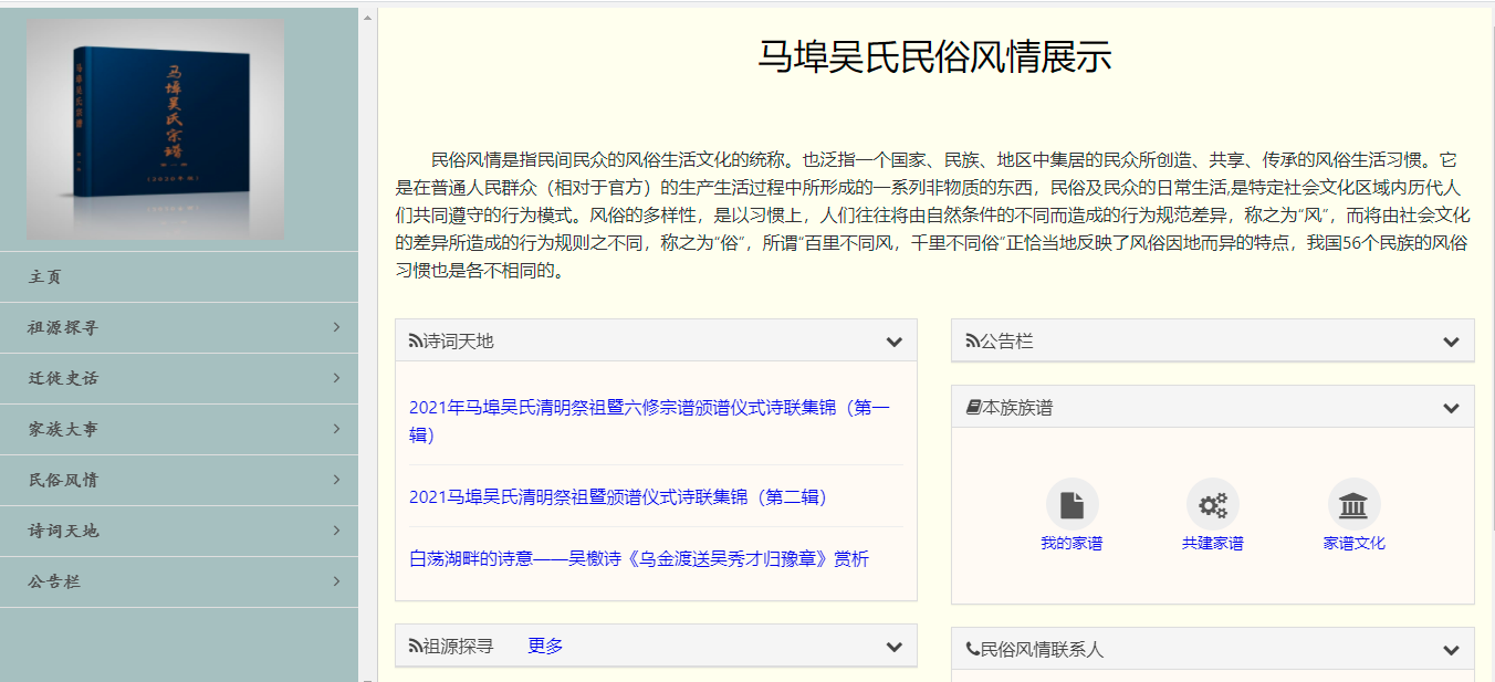 家谱案例管理员在家谱民俗风情目录页可以通过“生成二级网站”按钮,生成或修改二级网站地址,如图