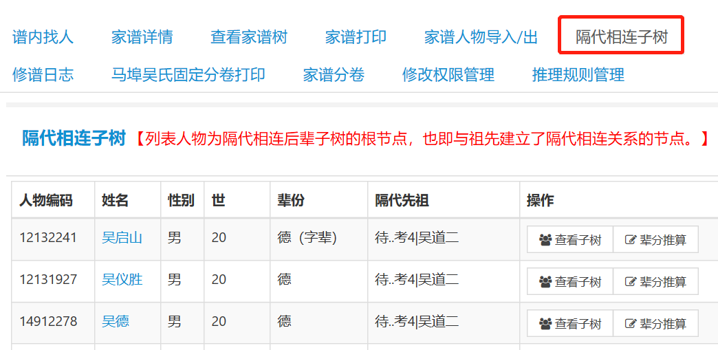 - 找人页面、人物详情页面、家谱树页面关系推理